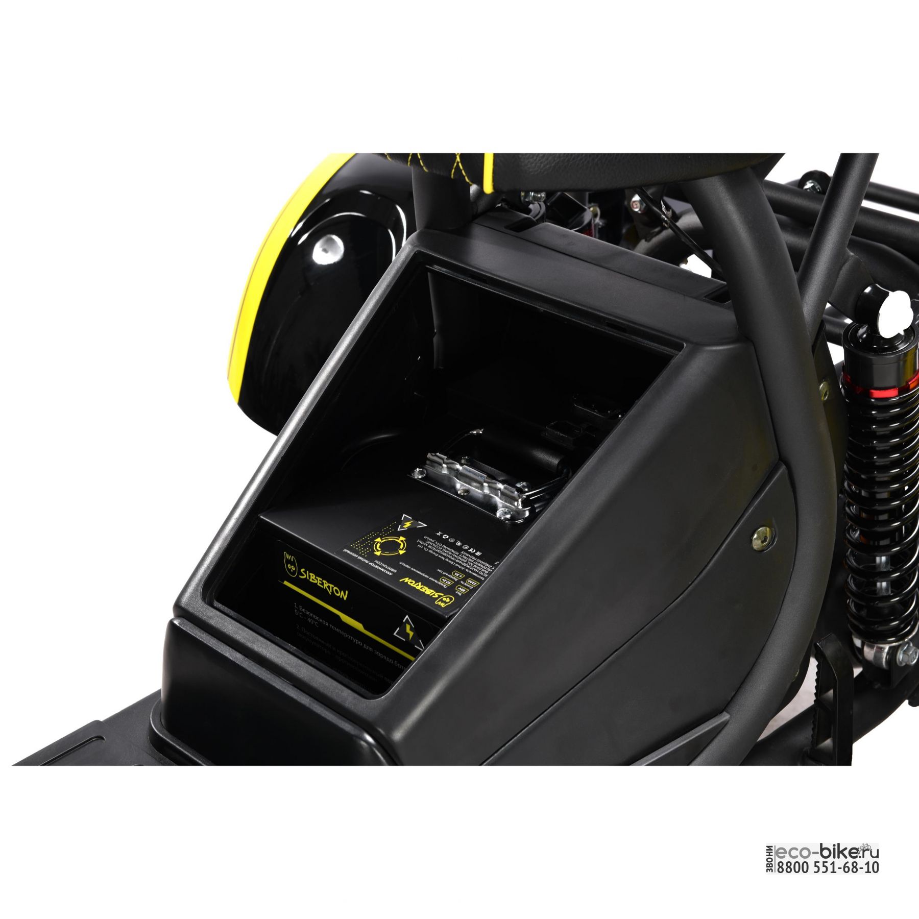 Электроскутер SIBERTON PRO 2500W - идеальный по показателям агрегат. Мощность мотор-колеса с мощностью 2500 В и максимальная скорость разгона до 61км\ч для быстрой и экологичной езды без автомобильных пробок. Емкая батарея в 21 Ач позволяет скутеру преодолевать расстояния до 60 километров без дополнительной подзарядки для длительных прогулок без страха внезапного разряда. Аккумулятор защищён от перезаряда и перегрузки. Широкая подножка и прочная конструкция позволяют скутеру выдерживать нагрузку до 260 килограмм что дарит возможность использовать электроскутер SIBERTON PRO 2500W людям разной комплекции, роста и возраста. Имеет удобное управление и переключатель передач, расположенный на руле. Оборудован двойным сиденьем для перевозки пассажиров.